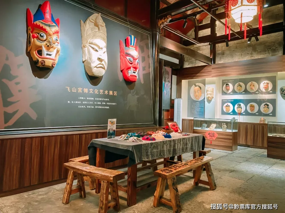 中南门历史文化旅游区的飞山宫,作为铜仁非物质文化遗产的展示基地,也是地方傩戏宣传、演出的重要场所,内设有傩文化艺术展区,墙上挂着各式各样的傩面具及傩文化介绍,这些面具是非遗文化传承人累积的艺术结晶,具有独特的艺术观赏价值。