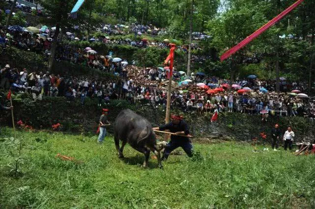 ◎ 花垣雅酉苗族祭司法力定鸡,喷法水。