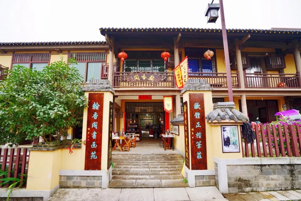 文化园内共有五道门,书法小镇的东门忠勇门外,还有书香门、厚德门、尚孝门和集贤门,每个门都有它的来历。穿过书香门,忽然闻到朗朗读书声,原来这里还有一所“欧阳询书法学校”。导游介绍,这所学校即“书堂山中学”,是一所以书法教学为特色的全日制中学,也培养走出过不少书法人才。
