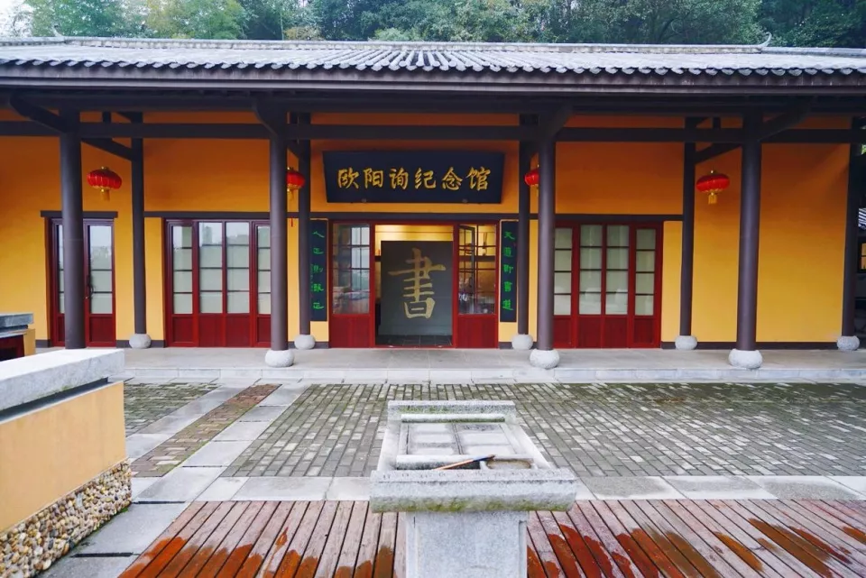 欧阳阁峙的一侧,是欧阳询纪念馆,纪念馆里不仅有欧阳询生平介绍,还陈列展示有一些他的字迹真体拓本及所用的砚台古迹等物。