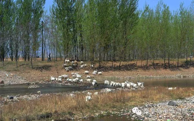 桥下的水并不深,清澈见底。有一群小羊仔站在水里的石头上喝水。小羊十分可爱,活泼好动却又听话的排成一排。