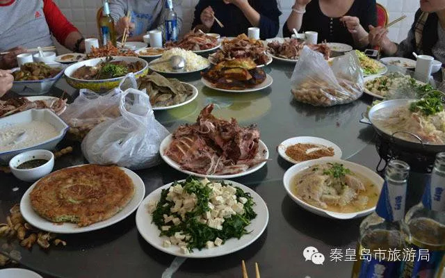 饽椤饼也是秦皇岛特产之一,三鲜馅的饽椤饼散发着沁人的清香,好吃!还有炖鱼、酸菜汆白肉、香椿饼、野菜拌豆腐等等当地的农家饭,都十分不错!