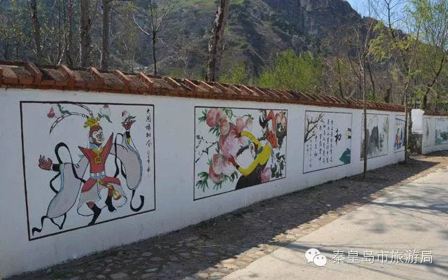 出了嘟嘟农场,继续往景区深处走,马路两侧有民房和小酒楼,临街的一面墙都刷成白色,上写有标语和宣传画.....