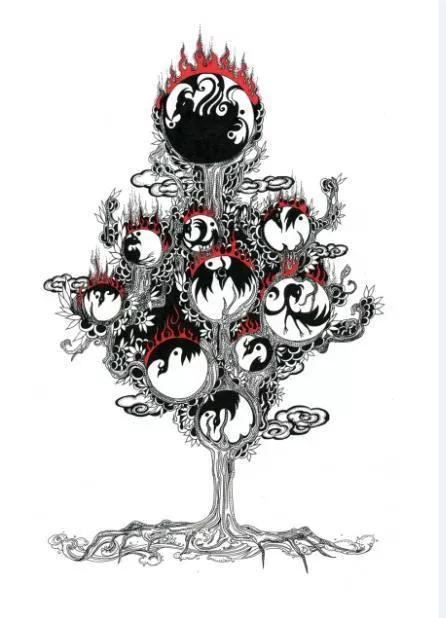若木一般与扶桑相并,有:“东极扶桑,西极若木”之称。有说扶桑和若木本为一种树种,只是根据日出日落而称呼不同罢了。小编在这里把它们算作两种神树,因为在外形上面它们就有很大的区别。《山海经·大荒北经》中有:“大荒之中,有衡石山、九阴山、泂野之山,上有赤树,青叶,赤华,名曰若木。”