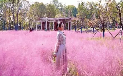 长沙县磨盘洲生态公园的这片粉黛花海 地铁直达还免票 片粉