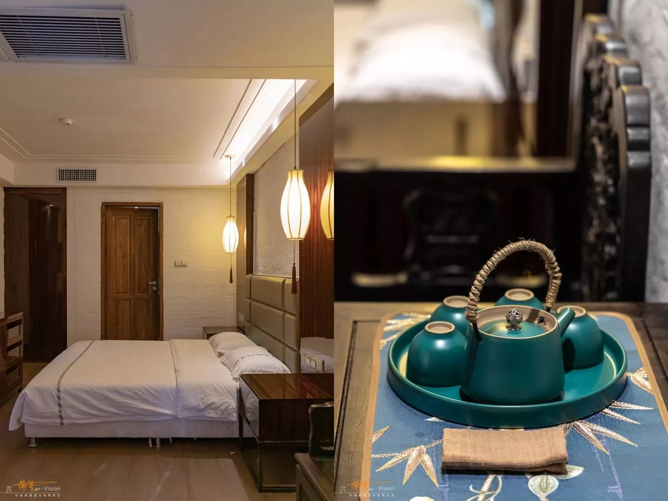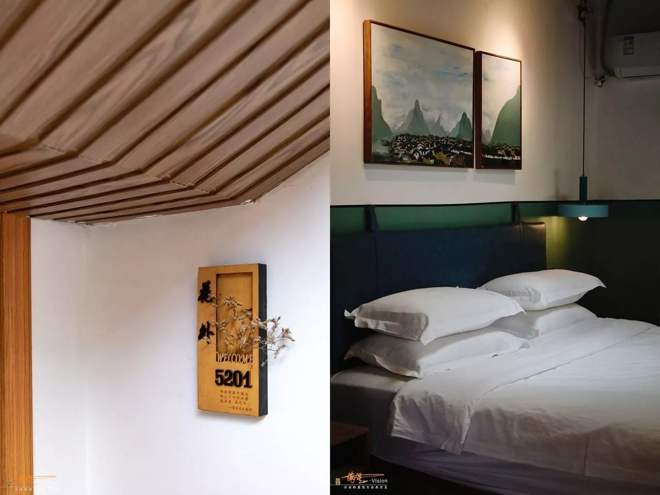 新中式风格的建筑设计,大窗设计可以是内享受到充足的温暖的阳光,很舒服,暖暖的色调,躺在大床上可以让人瞬间熟睡……这也是我一直期待的旅行在房间内的最佳状态!有客房8间,房型有大床房、双人房、亲子房等,房价在300-600不等。