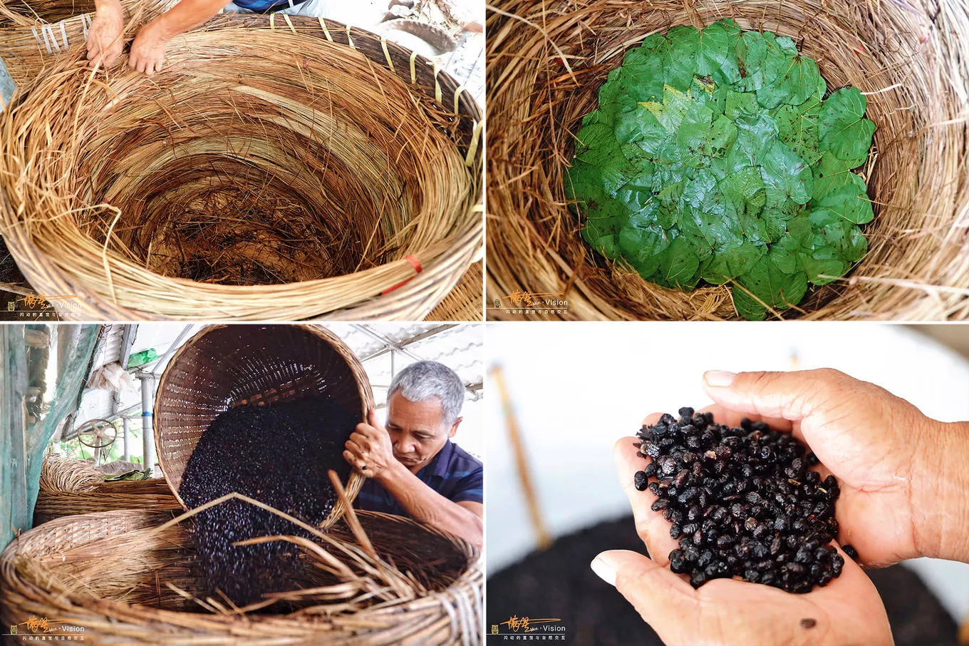 第五步:经过二次自然发酵过后的豆子就已经完全变成豆豉了,从甑中将其放入簸箕内自然阳光下晾晒。