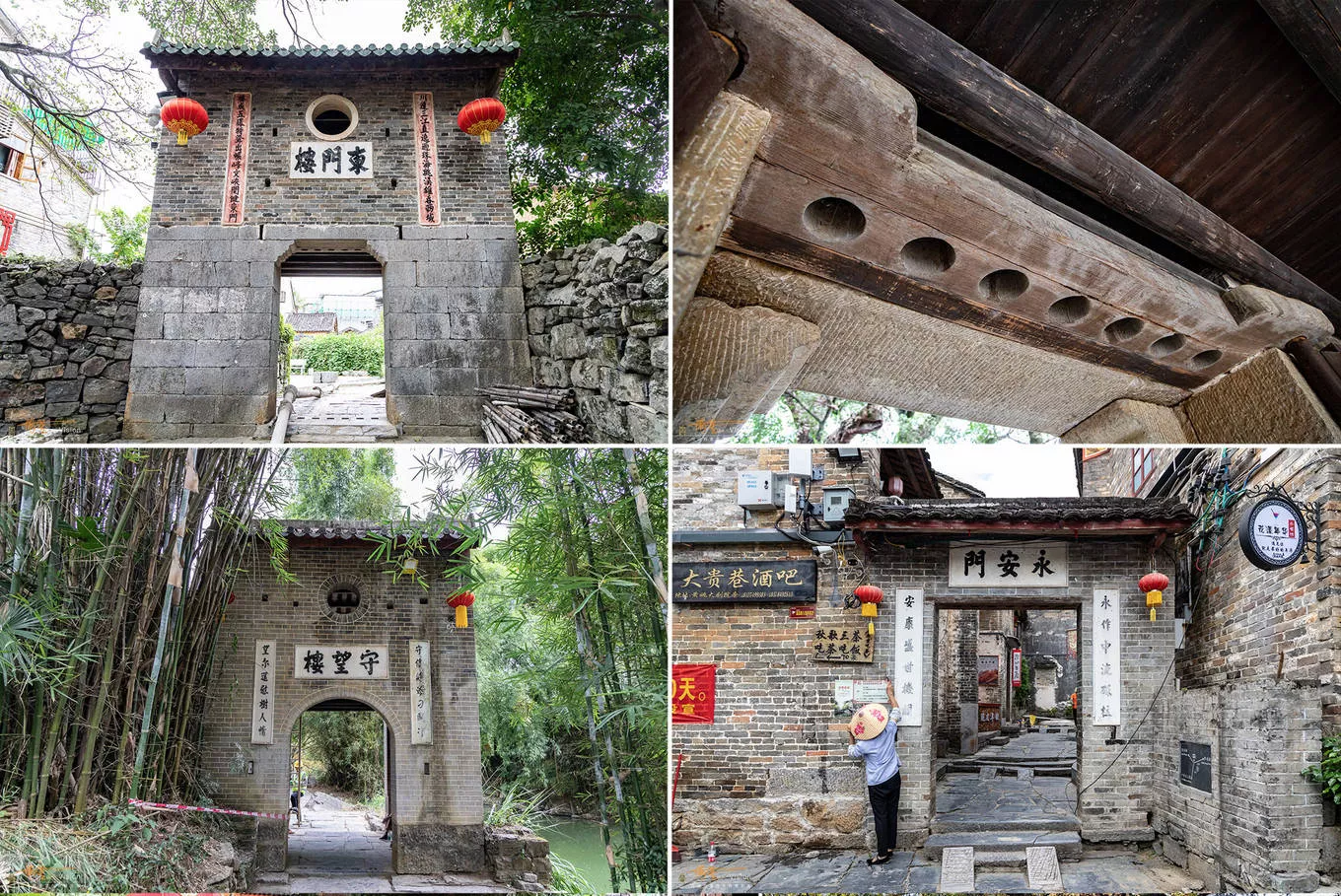 此处特别提示:路过门楼,一定向上看一眼,会发现有这样的长条木上有多个圆孔,当年是用来此门抵御外来入侵的,至今仍保留完好!