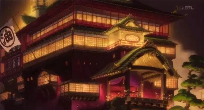 油屋是电影中出镜率最高,而且最经典的建筑之一,这家由汤婆婆经营的澡堂外型巨大,内里装饰富丽堂皇。这栋原家屋子拥有3000年的历史,是日本三大古泉之一的道后温泉。