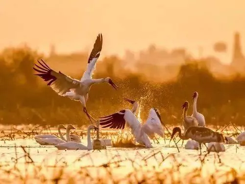 千年古镇江西永修县吴城镇是国家级候鸟保护区,素有“候鸟天堂”之称。