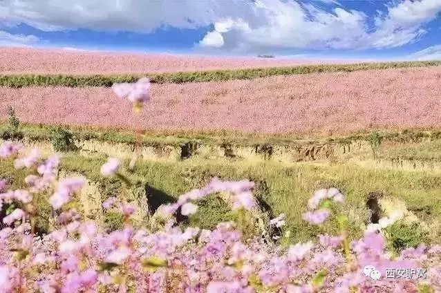 小小的荞麦花单看丝毫不惹眼,但铺满整整 55 万亩就只有说不出的壮观惊艳了。如果今年还没好好赏过一场花,来这里感受被梦幻粉包围的世界吧。