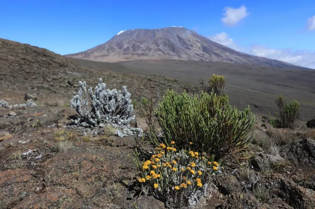 今天的路程虽然不长,但却是较有难度的攀爬,我们会在过程中消耗更多的体力。随着攀登视野会越来越开阔,我们可以欣赏到壮丽的高山全景。这时候植被也随着海拔的升高逐渐变得稀少,这个角度和位置能够欣赏到乞力马扎罗火山的壮美。到达马文茨塔恩营地(Mawenzi Tarn Camp,海拔4303米)后,下午我们专业的登山领队将带领大家在营地附近做适应性攀登训练。