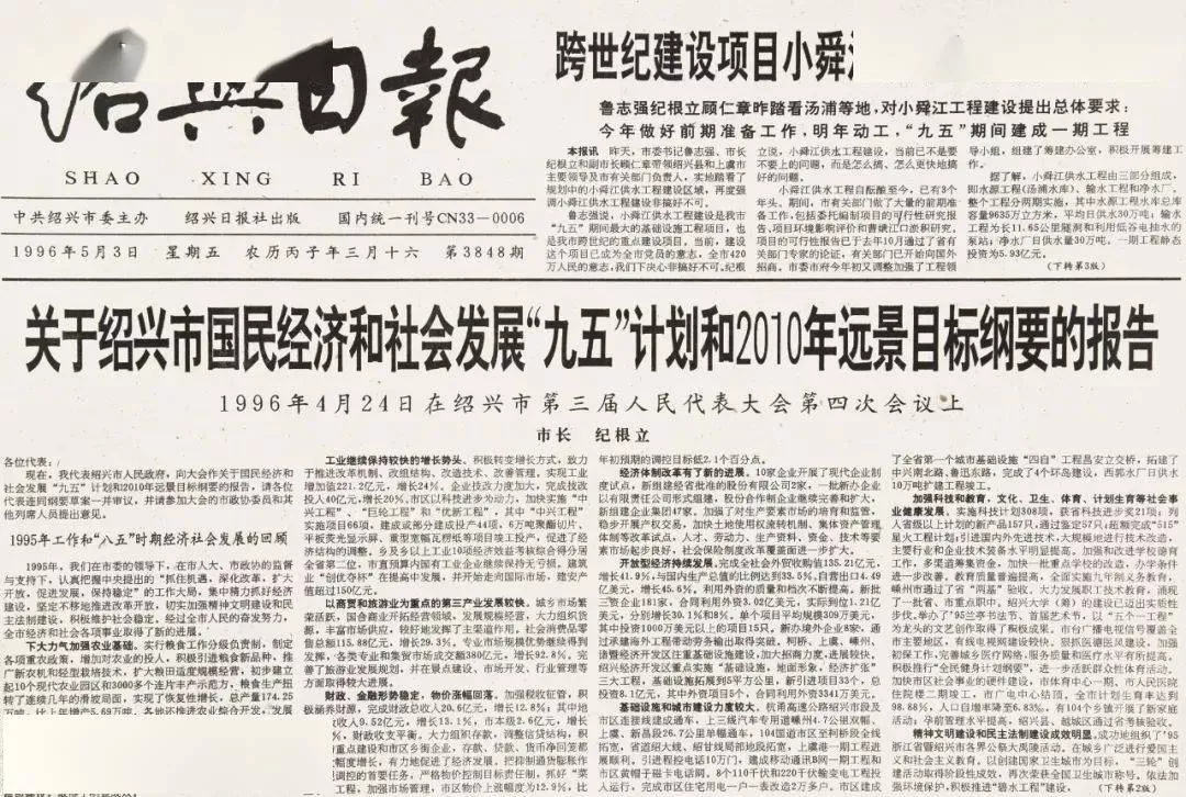 图丨 关于绍兴市国民经济和社会发展“九五”计划和2010年远景目标纲要的报告