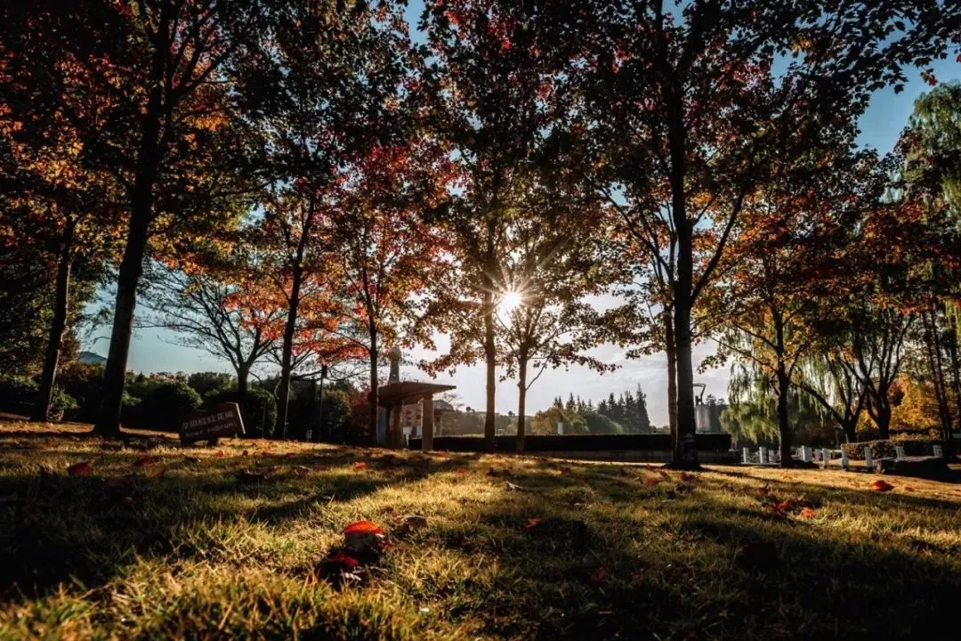 秋高气爽,公园里的草地绿中泛着浅黄,枫树叶悄悄换上了红装,分外艳丽。秋风瑟瑟,落叶纷纷,那散在地上的落叶被阳光照得一片暖黄。