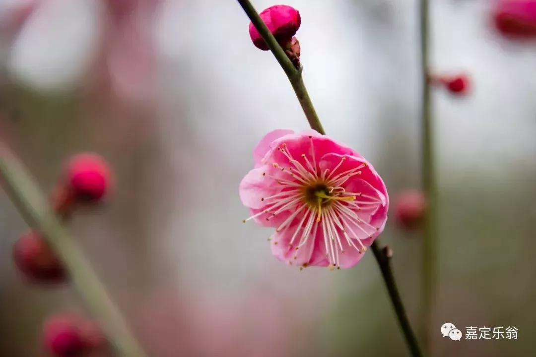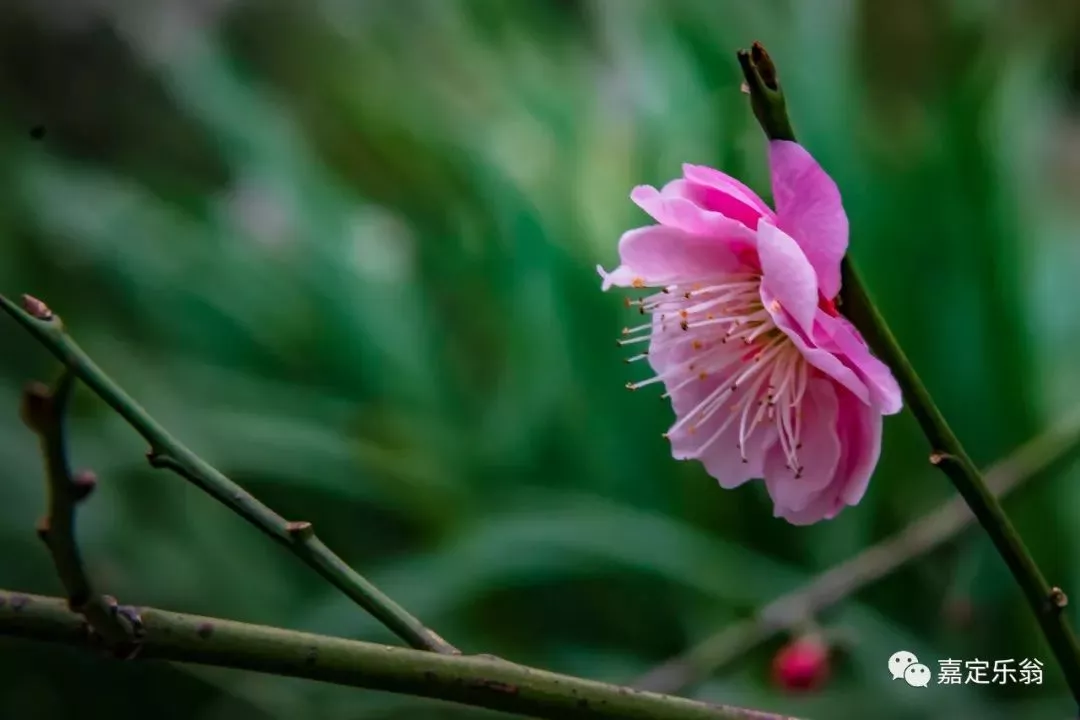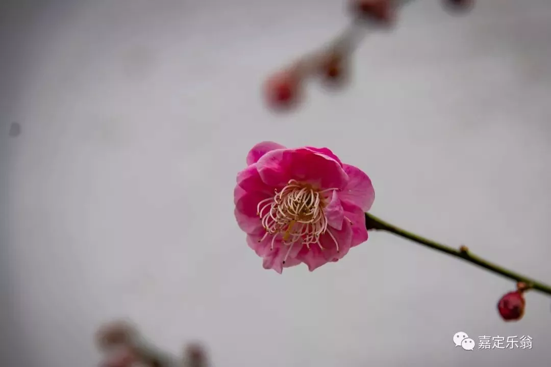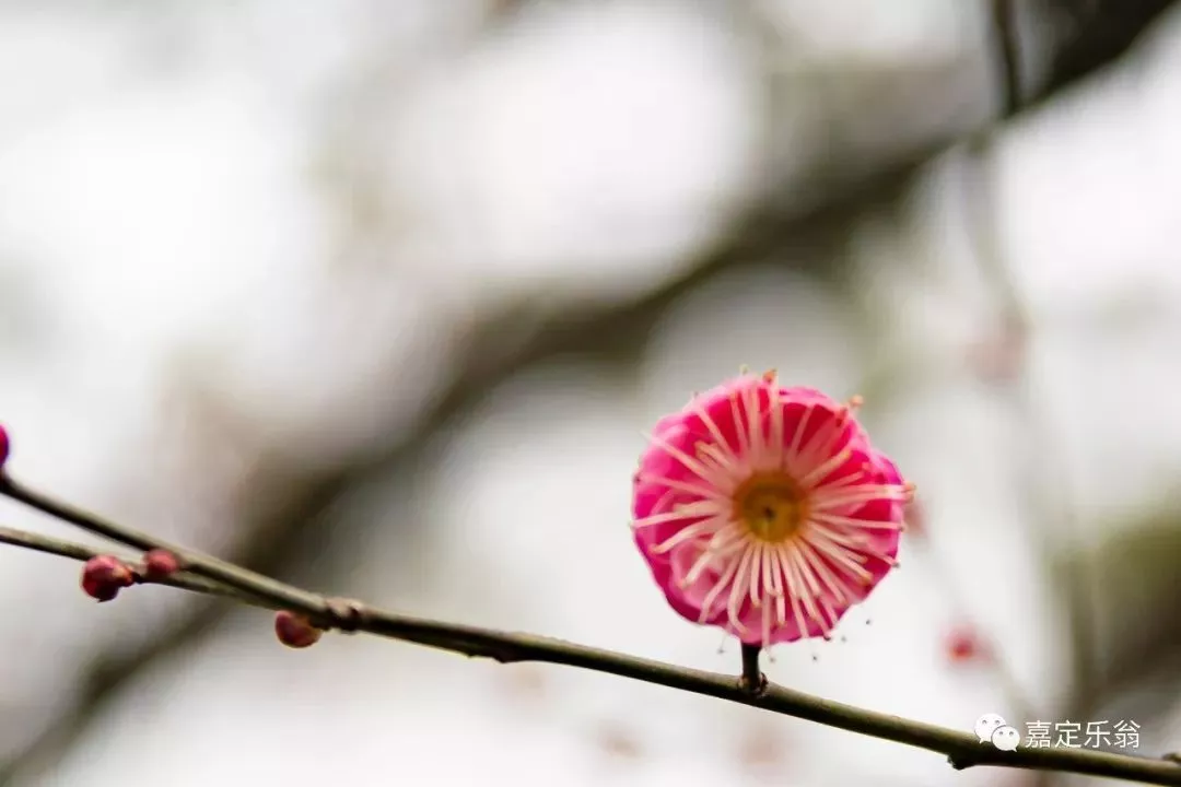 靠着嘉定博物馆的一支河边的红梅。