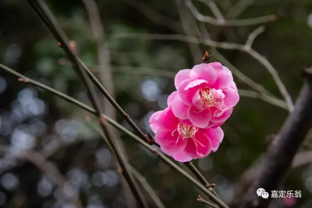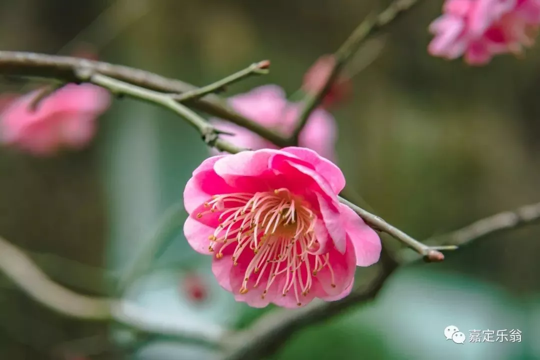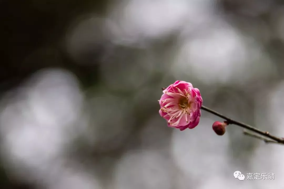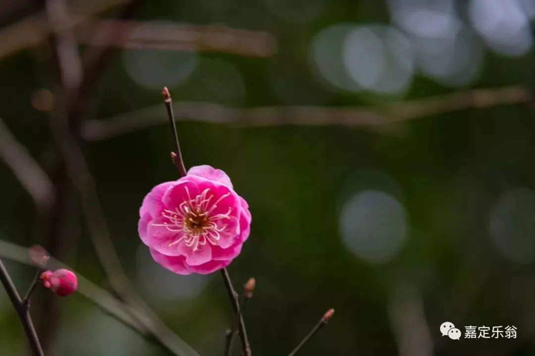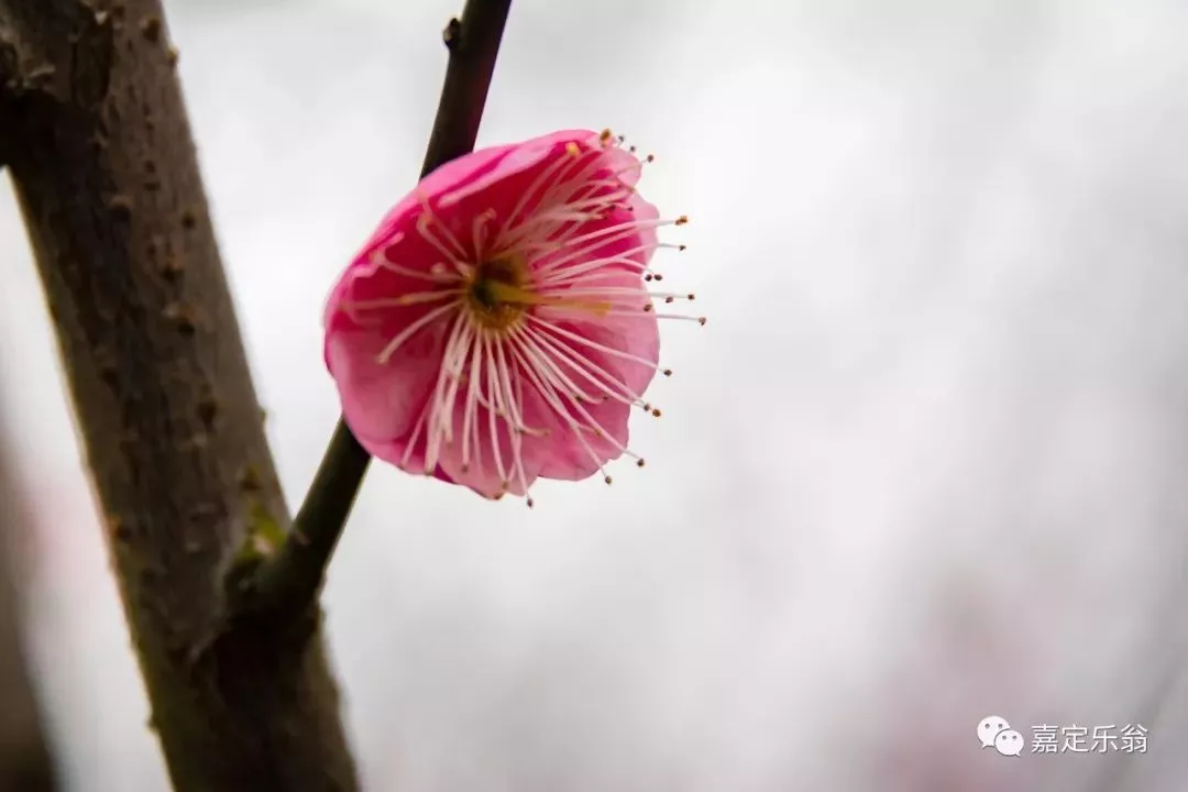 靠着嘉定博物馆的一支河边的红梅。