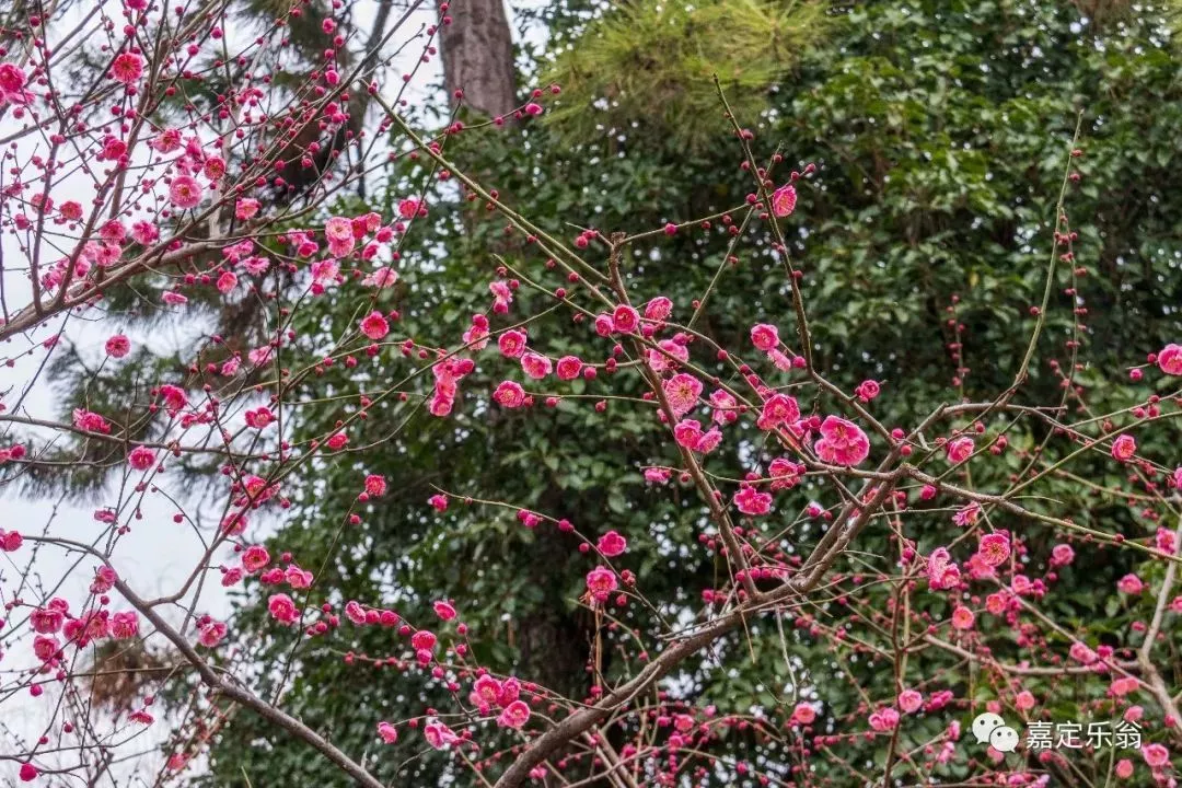 另外离元宵节愈来愈近,从网上看到嘉定为过节作足了准备、主要地点是嘉定 博物馆、嘉定孔庙,嘉定洲桥民清街、博乐广场等,因为还有些其它事情第一站放在了嘉定博物馆,可是到了嘉定博物馆看到秋霞圃的红梅怒放,加上老年大学摄友在相约星期四上的红梅照片,参观了博物馆的半坡展览后就进了秋霞圃。