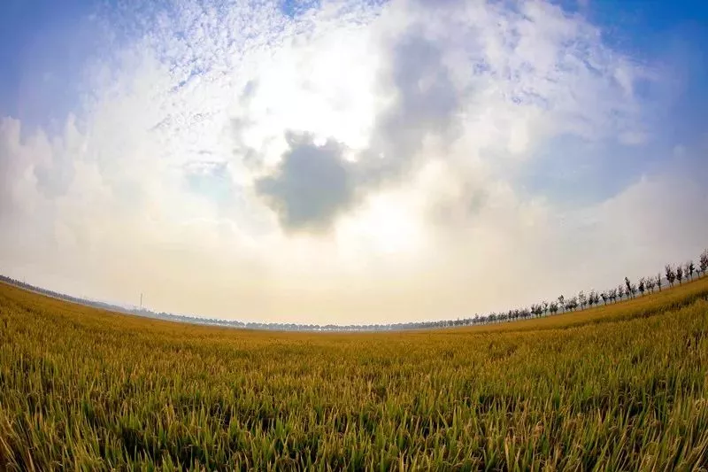 宽阔的机耕路和潺潺流动的河水有规律地穿插田间,河岸边植被丰茂,明沟、暗管星罗密布,水泵、箱涵一应俱全……在这片黄色稻田间徜徉,心有一亩良田,寻味农家记忆。