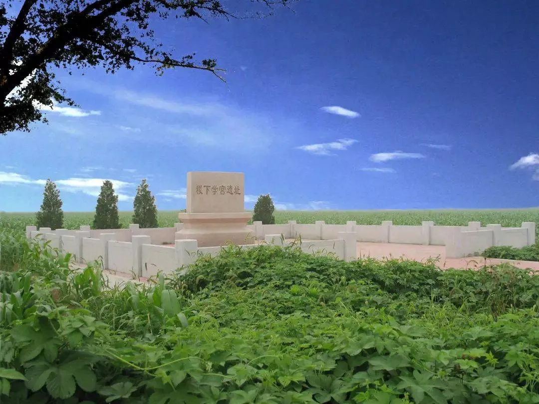 稷下学宫始建于战国齐桓公田午(公元前374年至公元前357年在位)时期,因其近齐国都城临淄的稷门而得名。它兴盛于齐威王、齐宣王时期和齐愍王前期,中衰于齐愍王后期,恢复于齐襄王时期,随着公元前221年秦灭齐而消亡,历时约150年左右。稷下学宫遗址的范围很大。北起邵家圈村西,南至刘家庄南,西至遄台(刘家庄西南),东至齐故城大城、小城西墙。2003年,临淄区政府在刘家庄东北、张皇路南侧,立稷下学宫遗址标志碑一座。稷下学宫是当时世界上举办最早、规模最大的官办大学,是我国最早的社会科学院,是战国时期“百家争鸣”的摇篮。