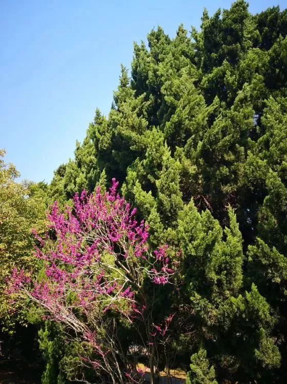 环园小道两侧花木扶疏,紫荆、牡丹、迎春、绣球、丁香、红梅等130余种名花异草,赏心悦目,沁人心脾。红枫、青枫、桂花、柏树、香樟、广玉兰等六大林带,错落有致,巍为壮观。