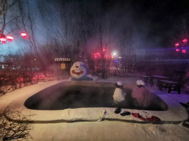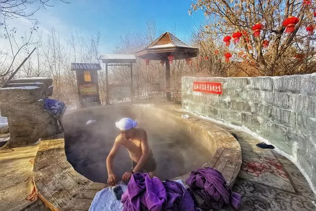 来连环湖的冰雪温泉疗养,是冬季流行的疗养,对身体健康极有利益。