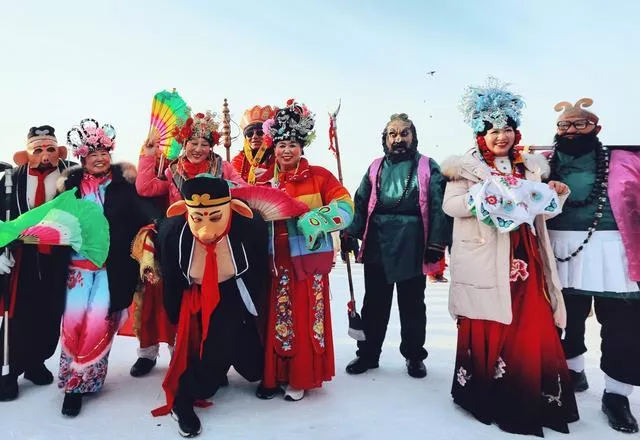 连环湖景区的湖面上,冰雪设施和游玩项目很多,亲子的游客可以去参加堆雪人大赛,专门摆放陈列的封在冰块中的各异的鱼对孩子有着科普教育的作用。看到孩子们和父母一同堆砌的雪人,其样貌和装饰各不相同,堆雪人短则十几二十分钟,长可达一个小时,休息时母亲就带着自己的小女儿去识别冰块中的鱼,感受到杜尔伯特人很关心自己的下一代,即使是雪地玩乐中,也希望寓教于乐,让孩子们有渔猎文化的知识、懂博物学懂科学,将来有出息。
