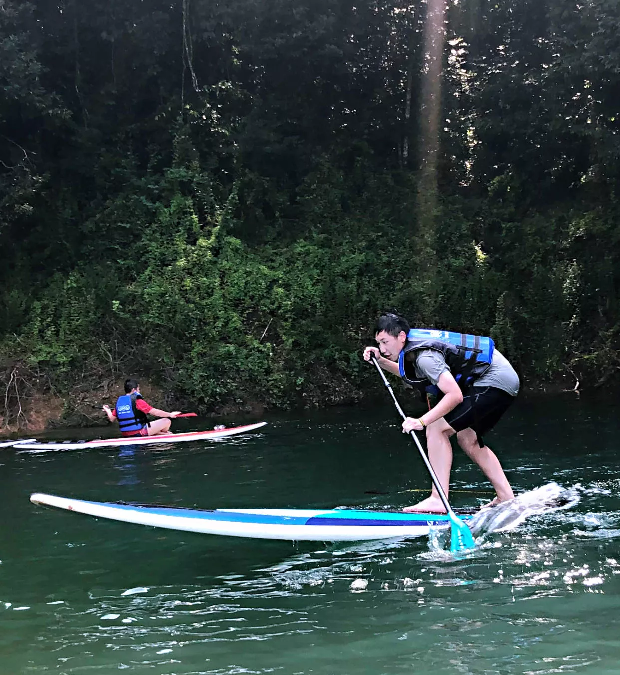 桨板体验在犹江的南湖国际垂钓基地进行,由桨板俱乐部的冠军教练细心指导下,这是全新的运动游旅文化体验,桨板基本动作很快上手,特色是在水面进行团建游戏,全程充满欢笑,教练协助拍照摄影,并特别的在夕阳时光划着桨板,尤富诗意。