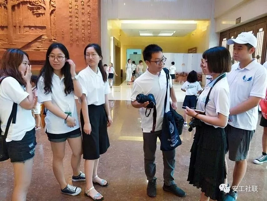图为安阳工学院“三下乡”本团队队长与上海外国语学“三下乡”队伍队长交流学习