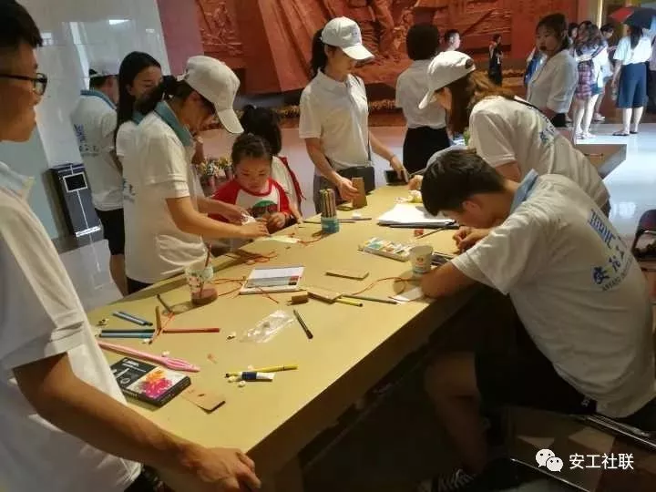 图为志愿者在兰考文化交流中心制作红色书签