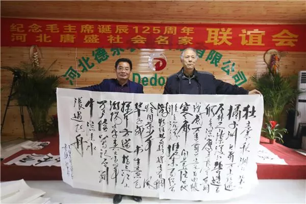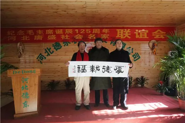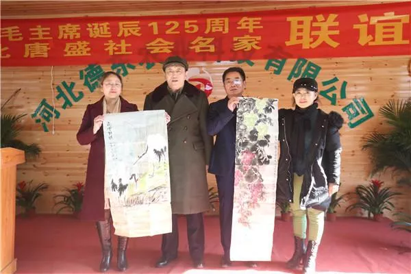 话说,一大早几十位艺术家冒着刺骨寒风登上大巴,全国新媒体联盟主席郝小学和吴柳东先生坐上接我们的专车,向目的地挺进。在河北唐盛集团、德东农业科技有限公司开发的伏羲部落山大家受到了唐盛集团董事长杨文林先生、总经理李冰女士及河北德东公司总经理马密文女士率领的员工们的热烈欢迎。