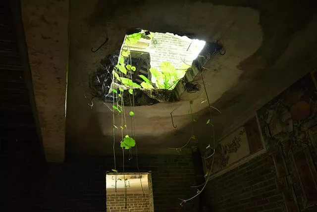 曾经的神龛还在,曾经的门框依旧,但早已人去楼空,只余下一座破败的村。 青苔与树根爬上了墙壁,正在逐渐吞没这些房屋。外墙用双砖砌成,并参考了碉楼的模式,双砖之间有一个青砖大小的空心,据说一是为了隔热,二是为了均衡支撑力量,比实心墙更坚固耐用。从一楼左侧的房间,有一梯可上二楼,楼梯是新搭建的估计是剧组拍戏需要,从庭院设计到室内结构仍可以让你感受到昔日的辉煌。