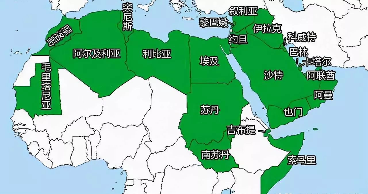 阿拉伯国家的分布——注意,信仰伊斯兰教的并非就是阿拉伯人,阿拉伯人也并非就一定是穆斯林