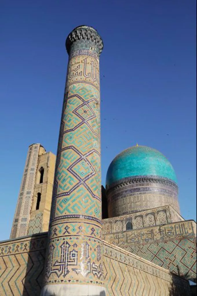 撒马尔罕是曾经花剌子模的首都,也是帖木儿帝国的国都。两千五百多年以来,撒马尔罕作为最重要的中亚枢纽,屹立在丝绸之路中心,仿佛站在世界文化的十字路口。