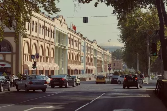 作为一个前苏联国家的首都,塔什干的新城区,有着浓郁的苏联风味。宽阔笔直的林荫大道与宏伟古板的议会大楼竖立在道路一侧,让人恍若身处俄罗斯的国土。俄语是这里通行的语言,公园内的地摊上也充斥着苏联时期的徽章。