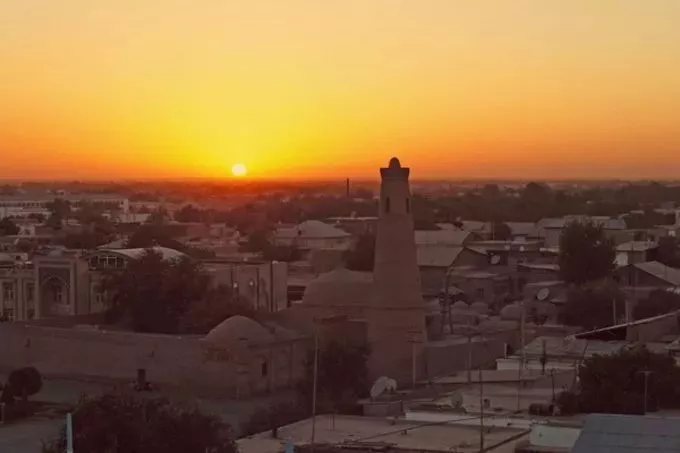 希瓦城里最高的建筑,是Khoja宣礼塔。你可以爬上118级台阶到了塔顶,观赏落日下的希瓦全城。
