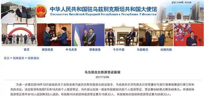 图:中国驻乌兹别克斯坦大使馆官网