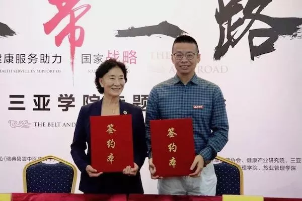 会上,党委书记、校长陆丹与中国—北欧中医药中心执行副董事长、瑞典碧云中医药大学校长范秀兰签署战略合作框架协议。双方将充分利用各自资源优势,建立全面、稳定、可持续发展的战略合作协同体,开展教育、旅游、健康产业等合作,共同推进中医药服务健康产业走向国际,尤其是中医药健康服务与管理等方面人才培养、科学研究及社会服务等领域的整合提升。学校还聘请瑞典碧云中医药大学校长范秀兰、三亚中美国际康复医学中心专家克林顿·斯蒂尔、中山大学附属医院专家莫·马丁为时尚健康产业学院客座教授,俄罗斯健康旅游中心专家雅娜为时尚健康产业学院健康旅游顾问。