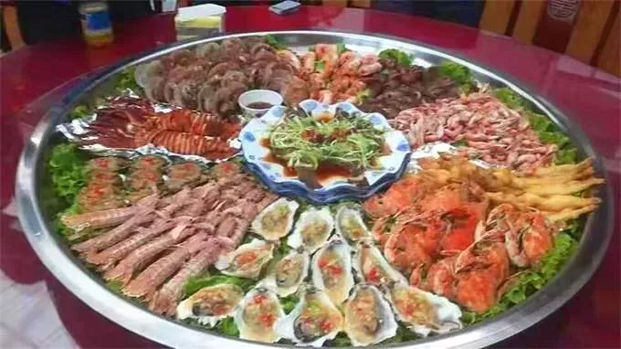 鲍鱼、海参、海胆、螃蟹、扇贝、牡蛎、江珧贝﹑花蛤、蛏子、钉螺、夏邑贝﹑海牛牛﹑海螺、大虾、鱿鱼、八爪鱼、尾鱼、黑鱼、鲅鱼饺子,均是直接从海中打上来,海鲜超级新鲜。