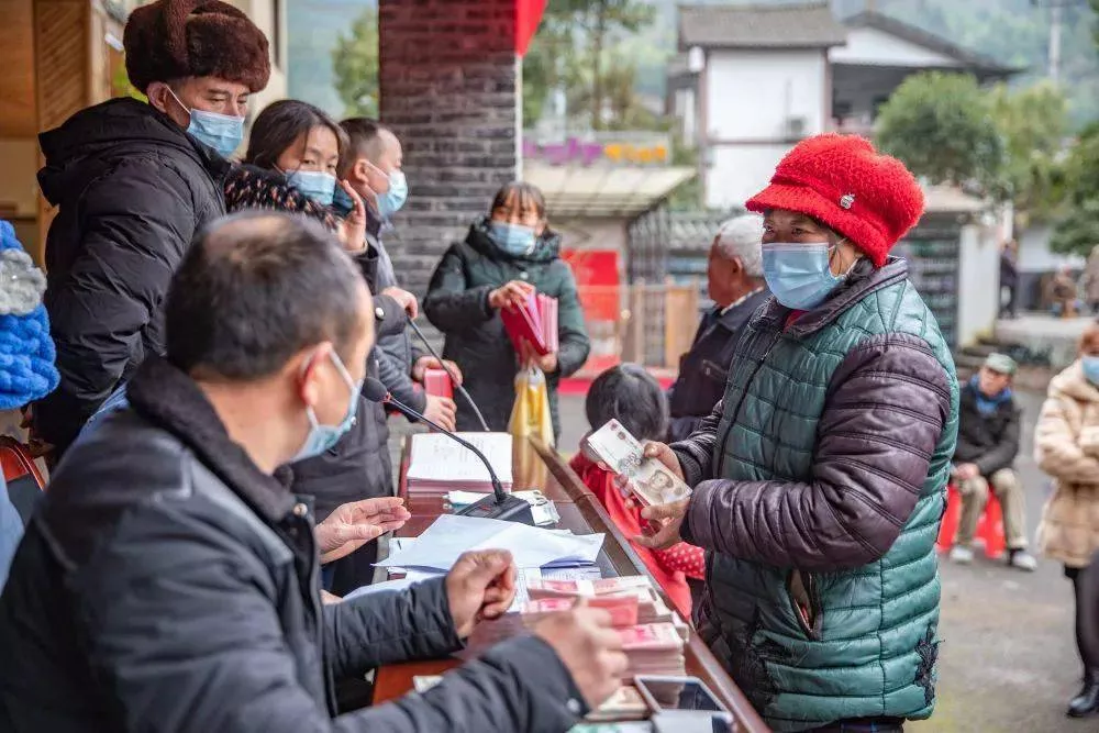 ↑1月5日,在重庆市梁平区竹山镇猎神村,村民在猎神村股份经济合作社分红大会上签字领取分红款。新华社记者 黄伟 摄