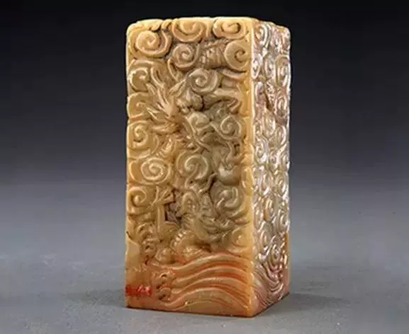 寿山石雕刻始于南北朝,历经隋唐、五代、宋、元、明而不衰。元代前,印章多以铜、铁、玉为材。明代,寿山石的钮饰艺术得到长足发展,雕刻艺人在继承古代玉玺、铜印等钮饰的基础上,加之造诣很高、风格独特的印钮艺术,寿山石章成了文人墨客们的心爱书物、珍藏书宝。