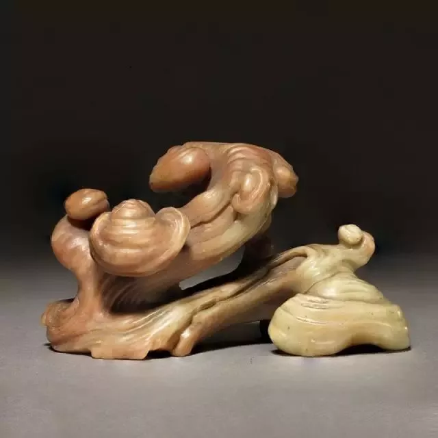 除了印玺及宗教人物外,清宫中还有用寿山石制作的文房用品、陈设品,这些形制各异、精雅玲珑的摆件,广泛陈设皇家的案头和柜桌上。寿山石雕文房用具有笔架、书镇、笔头等,陈设摆件有山子、盆景、插屏等,而寿山石丰富的色彩具有很强的装饰效果,雕出的作品堂皇而不失俗媚,艳丽而不失秀雅,符合宫廷审美意趣,因而被广泛使用。
