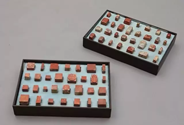 组印为光素章,印形多样,有长方形、葫芦形、椭圆形等。印文内容为祝寿吉语,每方均带寿字,分别为:“益寿何须九转丹”、“万寿齐朝衣与冠”等。表示祝王者长寿,愿后人永远铭记。这套印章不仅石质细润、造型精美,更兼具福寿祥瑞之意,乾隆皇帝对此青睐有加,之后又命内务府重新进行制作。60件一匣,共两匣120方。这是其中寿山石制作的60方。