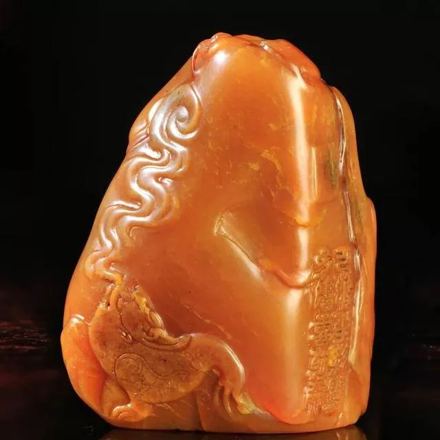 据史料记载,寿山石在“康熙时采取一空,至嘉庆初诸坑复产“,因此,嘉庆皇帝所用印石品种有所增加,最主要的是,在这一时期又出现了宫中寿山石雕纽的一个高峰,突出表现在诸多稍有微疵、裂痕的石表施以浅浮雕,因材施技,极富画意,巧妙地掩盖了石头本身的缺点。