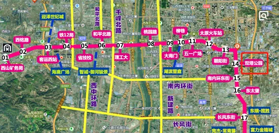 规划中的地铁1号线横穿双塔寺片区,由北向南有朝阳街站、南内环东街站、东太堡站三座地铁站。