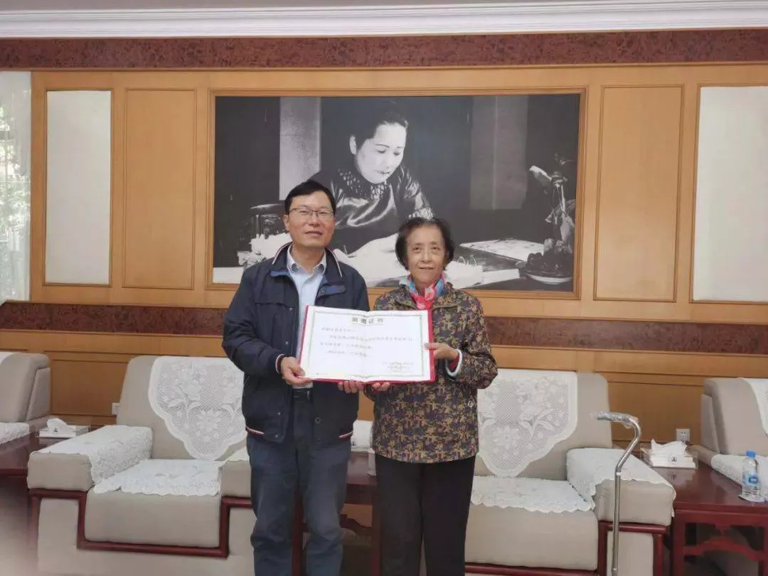 图为曾爱平女士接受捐赠证书