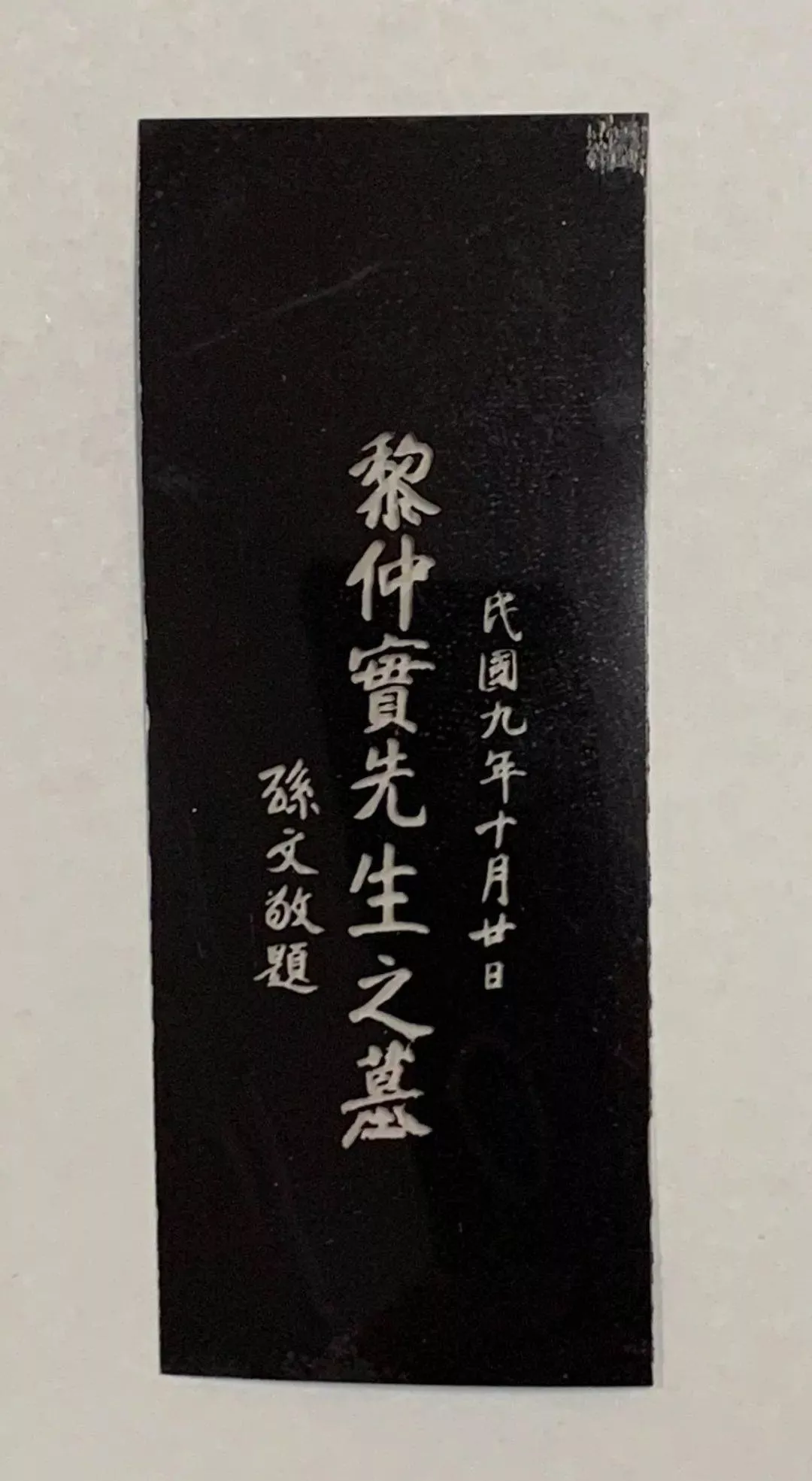 图为孙中山为黎仲实题写墓碑的照相底片
