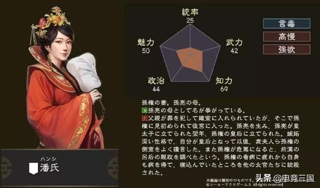 《三国志14》新武将孙权之妻。孙亮之母确定登场—潘氏 孙权