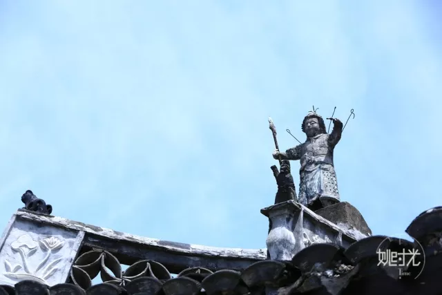 在越国公庙的屋脊上,我们还看到了一对形象鲜明造型生动的塑像,他们是谁?站立在屋脊的角上,是为了守护庙宇还是有其他意义?我们仰视天空的时候,能够看到他们同样目视远方……,或许他们仍在无言的述说着一些故事,只是我们的耳朵只能听到有声的言语,不能领会他们的心意罢了。