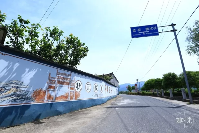 长廊里面分别挂着余姚名人的光辉事迹;中央草丛中“金榜题名”的牌坊庄严精美,牌坊上的雕刻清晰的刻画着那个时代的历史,不禁让人感叹时光荏苒,历史已过去千年,虽然村中新楼拔地而起,却只有那小桥流水仿佛依然流淌着那悠悠的文化古韵。
