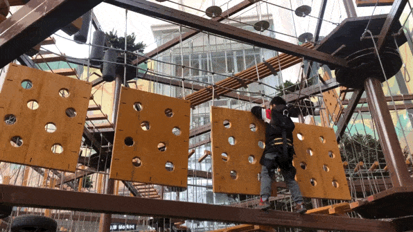 “坚果部落”位于一层的挑战娱乐区,占地面积约1000㎡,面对全龄游客开放,给人以五星的挑战型体验。